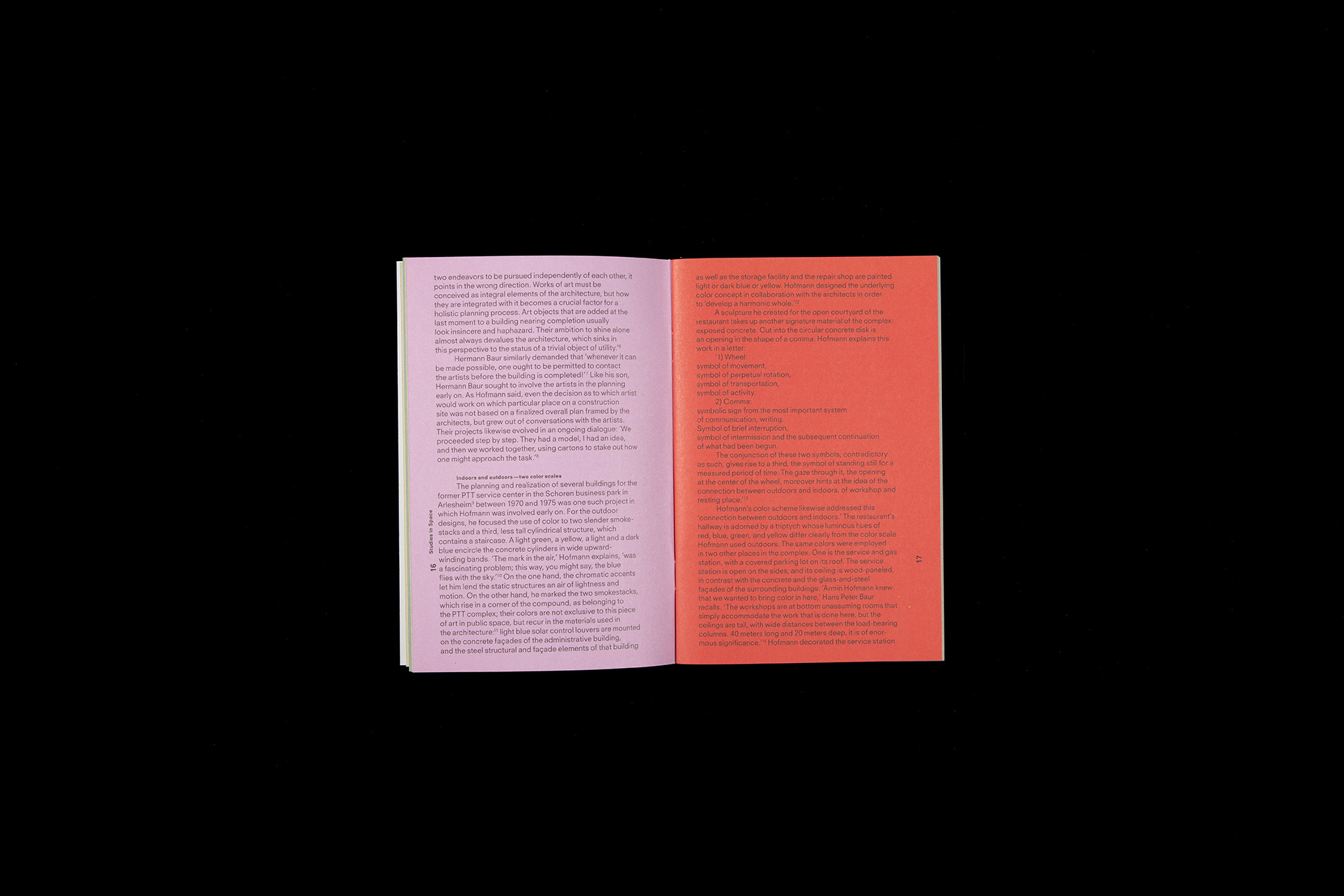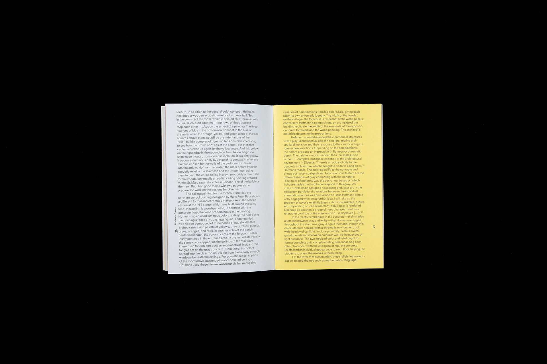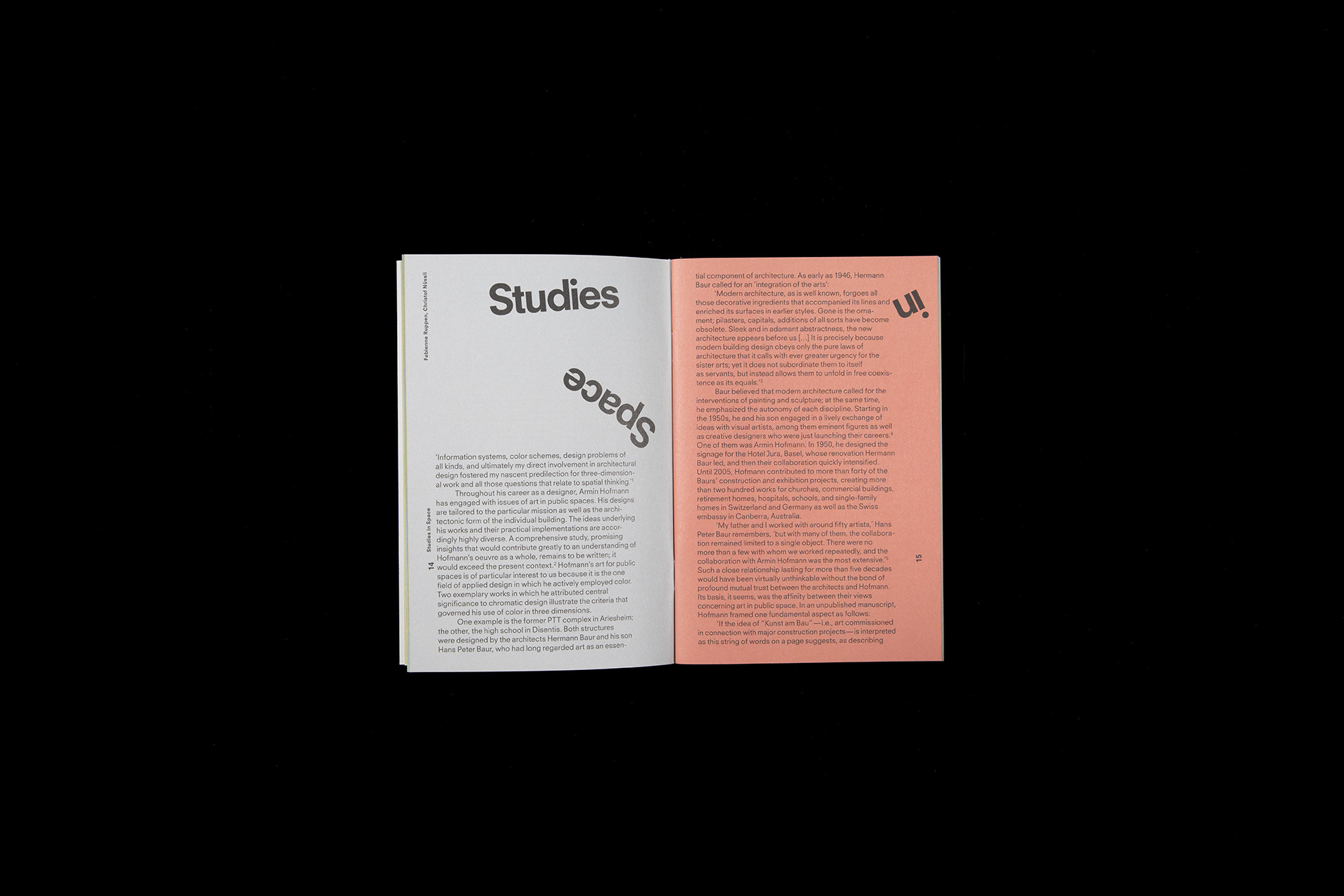 The publication Armin Hofmann—Farbe. Texts on the exhibition was published on the occasion of the exhibition at Gallery Susanna Kulli, Zurich, in the summer of 2012, providing background information about the color work of the Swiss graphic designer. The bilingual publication includes the essays A More Nuanced Vision (Fabienne Ruppen) and Studies in Space (Fabienne Ruppen, Christof Nüssli) as well as recollections written by Armin Hofmann’s former students Philip Burton, April Greiman, Aki Nurosi and Moritz Zwimpfer. These accounts open up new perspectives on his teaching of color.